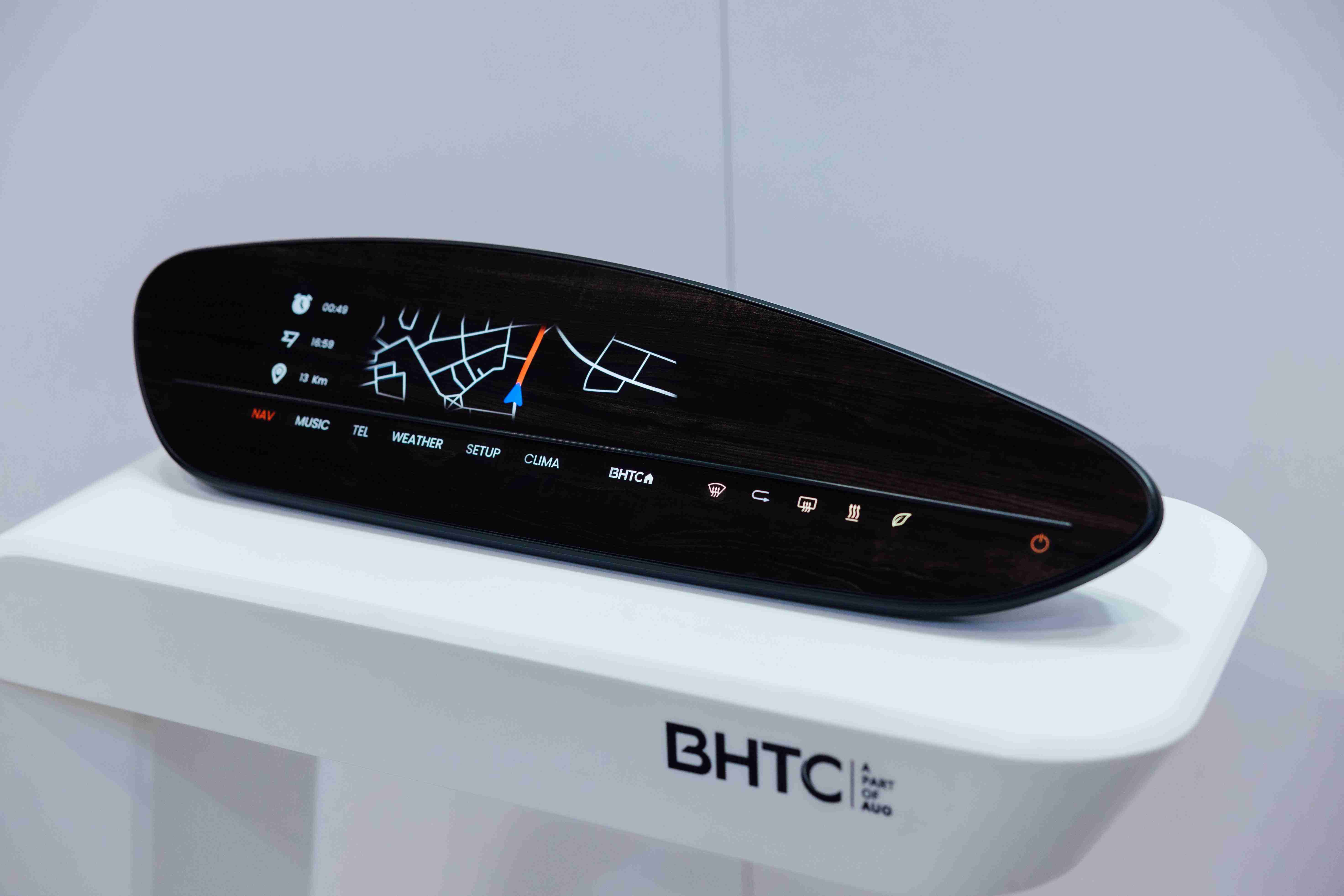 BHTC的木纹车用显示器(Display Behind Wood)将无缝木质表面与显示器结合后,,,,可以融入车内设计中,,,提供驾驶优质的视觉效果,,,加上其无边框的设计和亮度调控,,,,创造更优质的车内体验。。