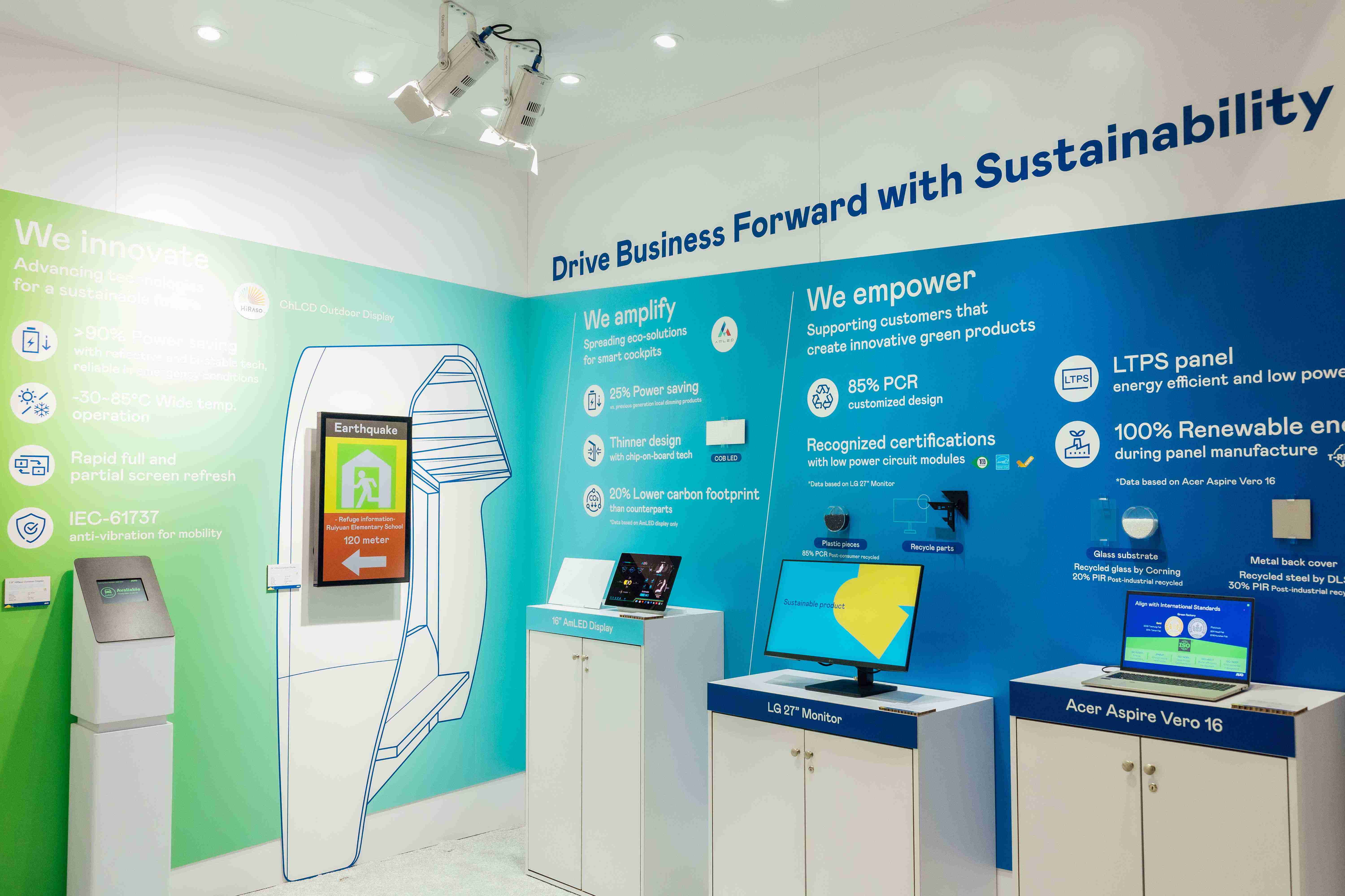 糖果派对运用创新显示技术HiRaso胆固醇液晶双稳态技术达到显示零耗能、、扩大节能省电的AmLED显示技术应用于车用产品、、以再生的消费后回收(PCR)塑料及全绿电生产之面板,,,,应用于笔电及萤幕,,增加绿色价值。。。。