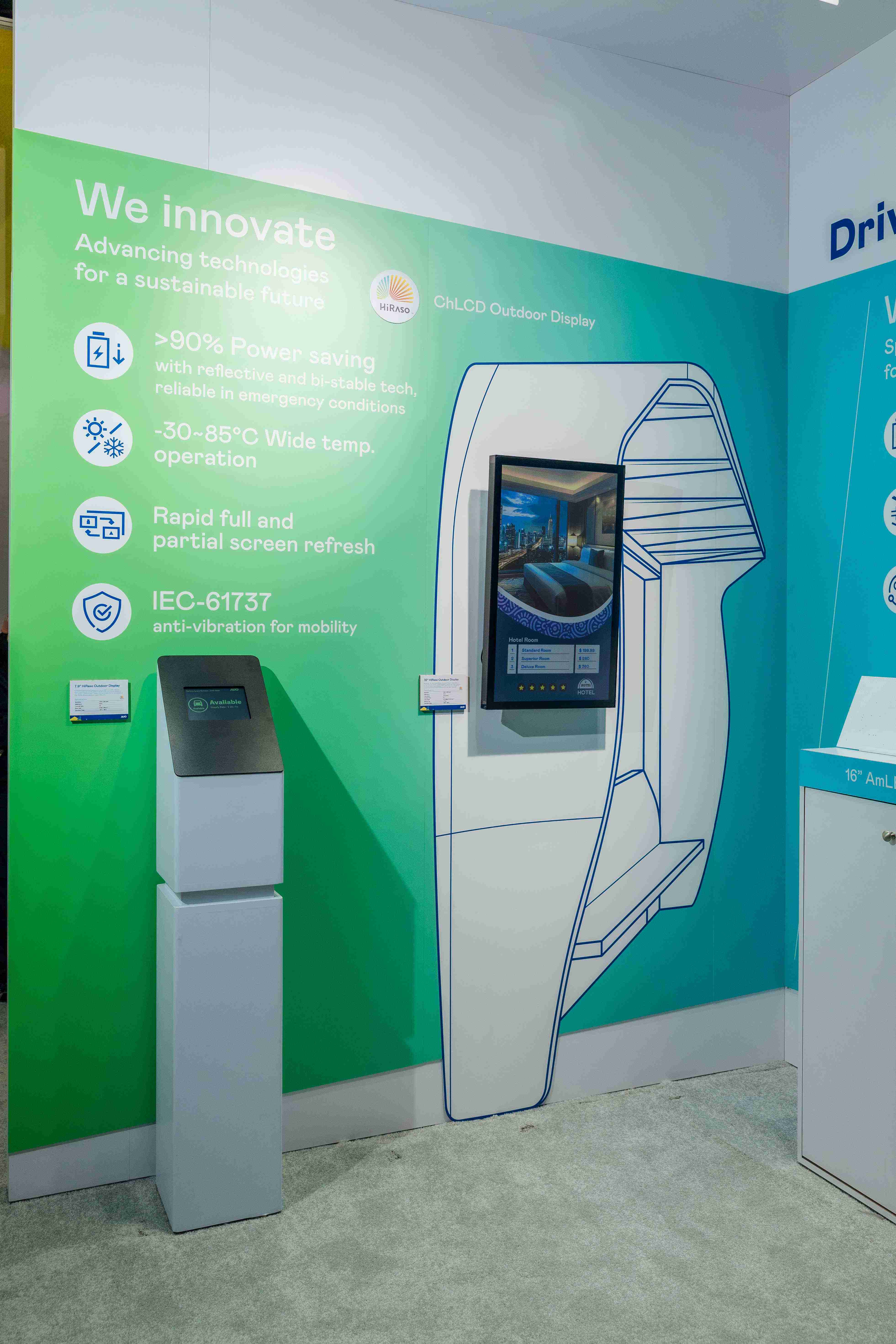 HiRaso胆固醇液晶显示器运用反射环境光线的方式,,呈现影像显示时零耗能的环保省电诉求,,,光线愈强愈能呈现绝佳的色彩饱和度及显示效果,,,,同时在摄氏-30度至85度间宽温的使用优势,,为户外电子看板的新首选。。