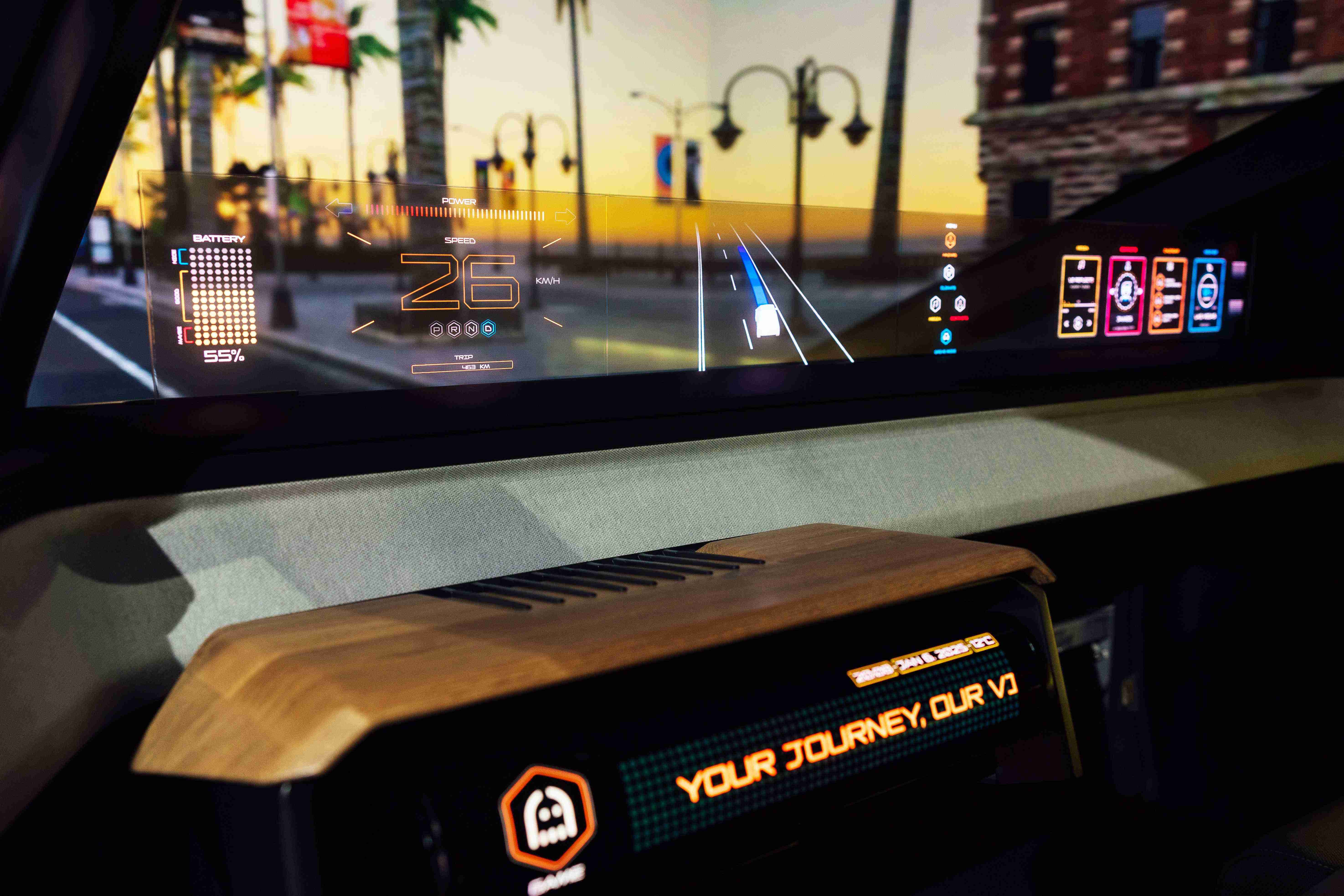 糖果派对Smart Cockpit 2025 在车头及车尾搭载合作伙伴Ennostar开发的互动式矩阵显示器(Interactive Matrix Display),,,,其突破传设计框架,,利用优化的光源整合技术,,提供更高亮度与对比度的显示效果,,,,营造驾车者个性化风格并传递讯息。。